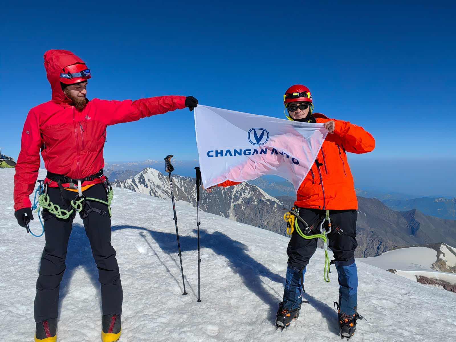 «Нам невероятно повезло с погодой: не было ни снега, ни сильного ветра. Мы вышли в два часа ночи, чтобы избежать тающих трещин в леднике, а также камнепада, которые случаются, когда солнце разогревает гору. Перед самой вершиной пришлось немного поработать в связках, и последние 200 метров вверх были крайне непростыми. Но развернуть флаг компании CHANGAN на пике оказалось для нас настоящим приключением, оставившим свой след в истории и незабываемые эмоции в памяти», — прокомментировал учредитель «Чанган Центр САРМАТ Новосибирск» Кирилл Егошин.